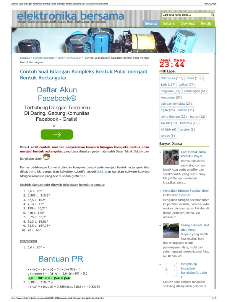 Contoh Soal Bilangan Kompleks Bentuk Polar Menjadi Bentuk Re Sumber : www.scribd.com